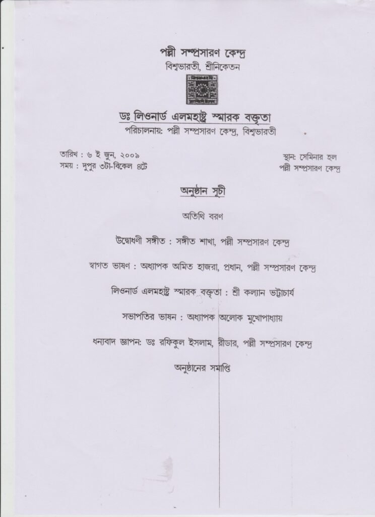 - We would try to create ‘Character and Culture’ in the society through various cultural programmes, such as, drama, films, documentaries of great men and explaining in a very simple and easy manner the relevant poems and literature of the great men.